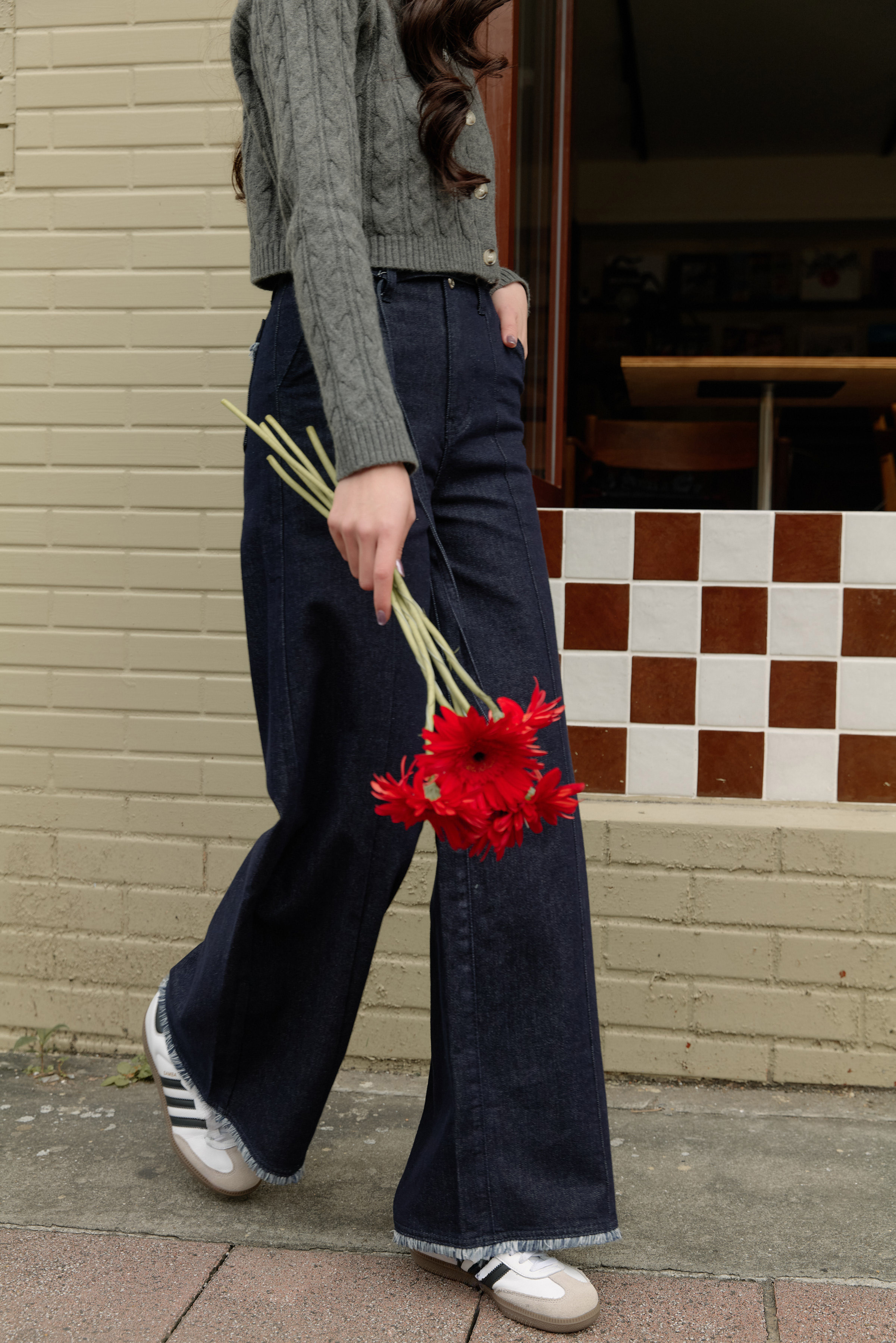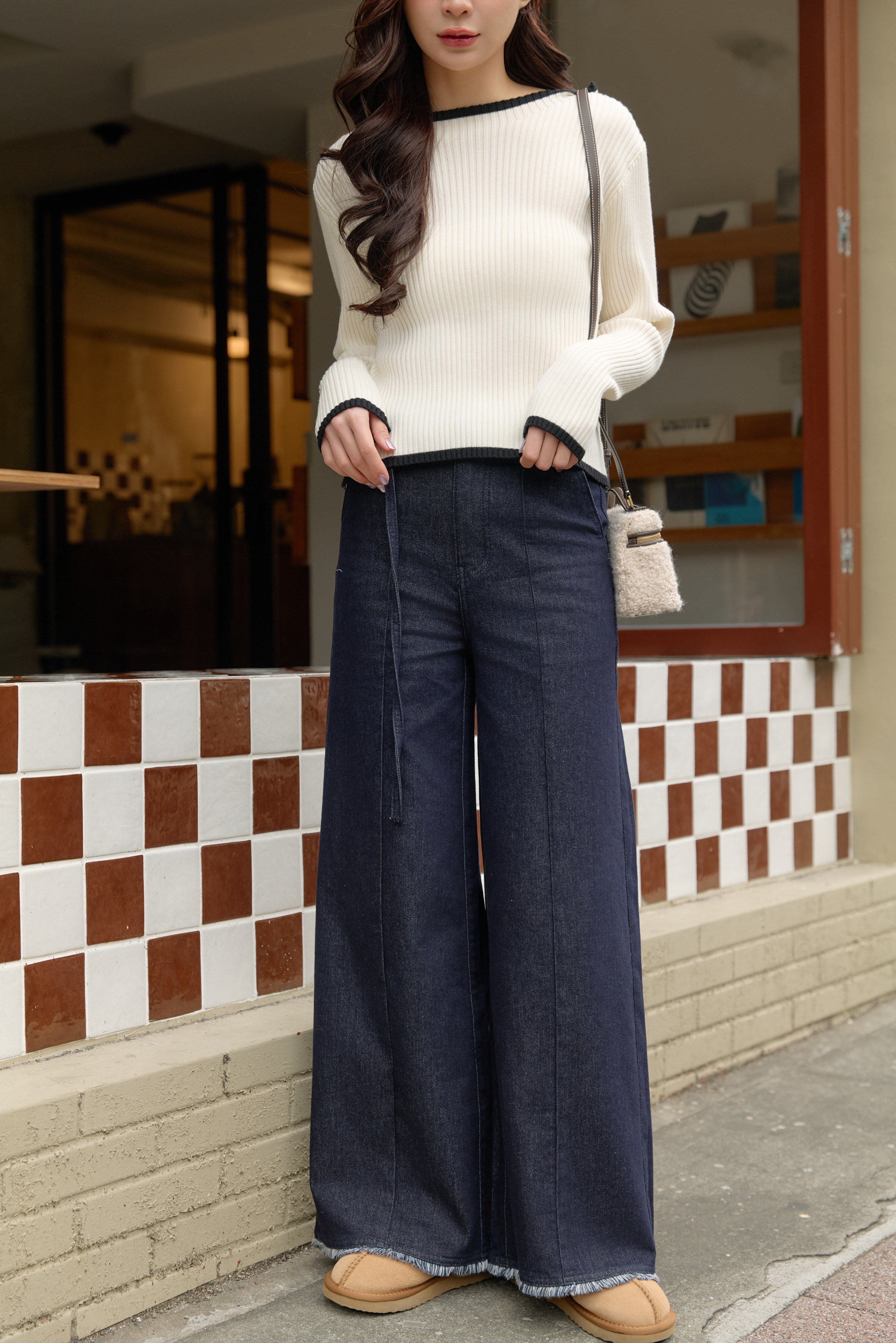 | 試穿報告 | 布料有彈性~ 短S:褲長蓋腳踝、不落地 S:褲長會碰地,搭配厚底鞋超級顯瘦又長腿! |